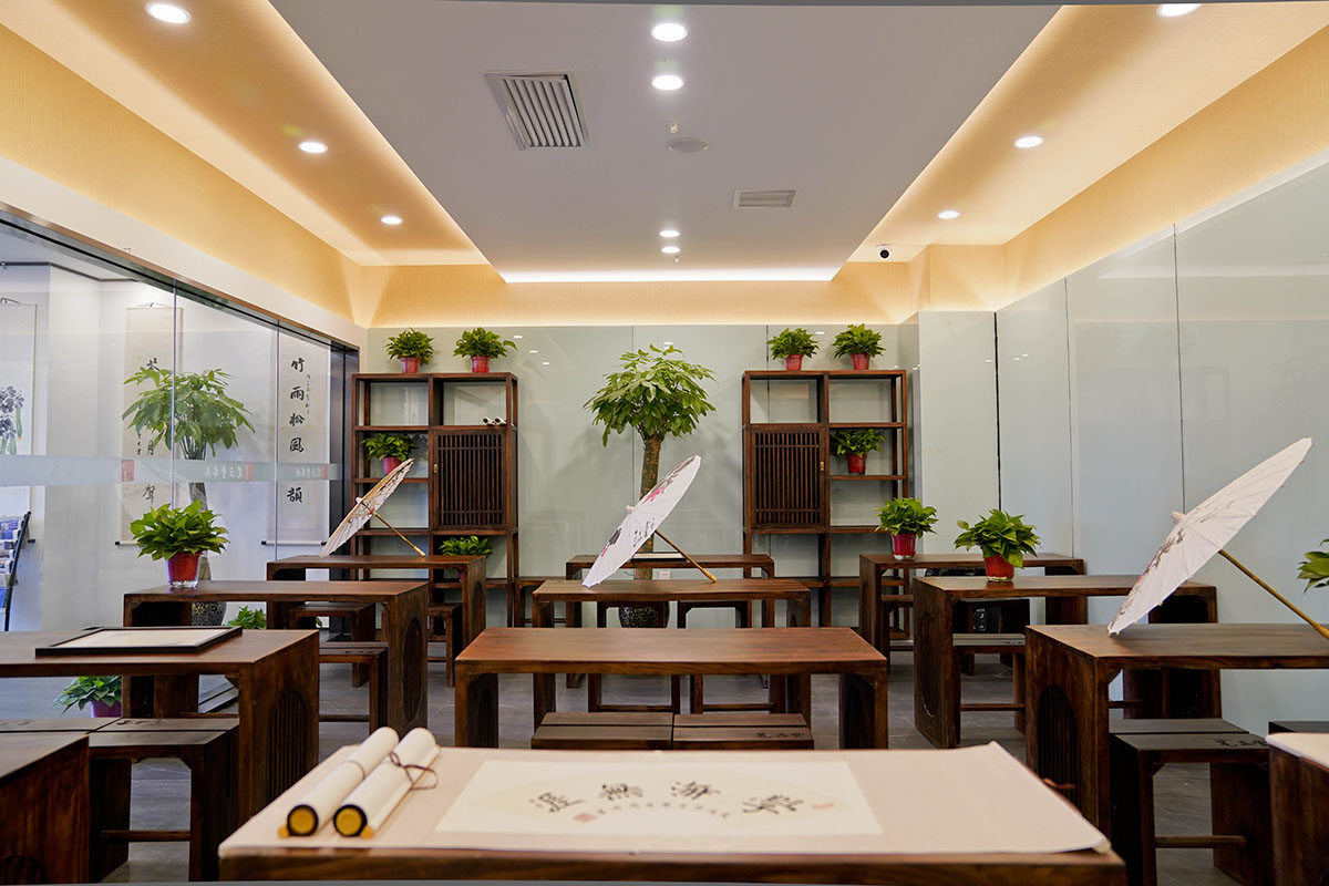 中國傳統文化藝術經典,寓教于樂,與書畫主課程相得益彰。學生可根據個人興趣,靈活選擇。 課程主要包括篆刻、剪紙窗花、線裝書、陶瓷釉上彩、茶道、古琴、扇面制作繪畫、香道、拓片制作以及國學課程知識(禮儀課:就餐之禮、會客之禮等)等。